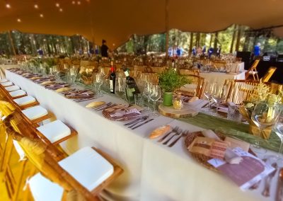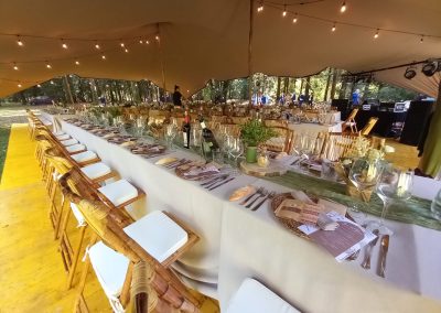 Apostamos por una carpa beduina o de estilo inglés, con iluminación interior y exterior y opción de suelo de madera o incluso estufas, porque nunca se sabe. Cubrimos todas las eventualidades, máximo detalle.