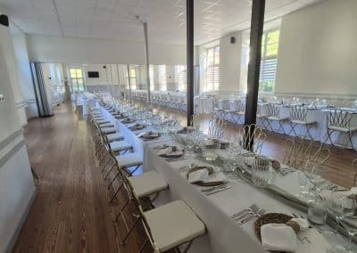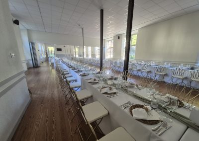 Aunque damos la mayor trascendencia a los exteriores, en los espacios interiores, contamos con salones suelos de madera y recién renovados, en un edificio centenario dentro de Balneario Casa Pallotti. Disponemos del Salón Balneario Casa Pallotti, con 330 m2 divisibles en dos partes (185 m2 y 145 m2). Además, contamos con otros dos salones de apoyo con 82 y 75 m2, respectivamente, para poder dar la forma perfecta a vuestra Boda.