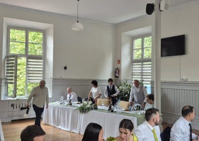 Todos nuestros invitados destacaron la calidad de la comida y la amabilidad del personal. Sin duda volveríamos a casarnos de nuevo en el Balneario Casa Pallotti.